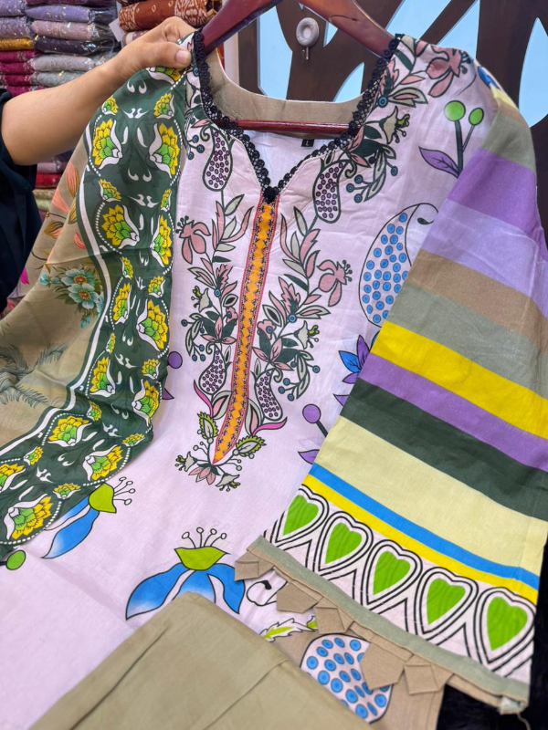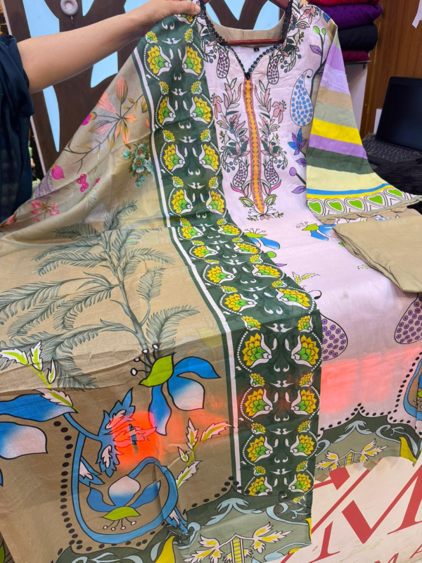 স্টাইলিশ ও আরামদায়ক এই রেডি টু ওয়্যার কালেকশনটি তৈরি করা হয়েছে প্রিমিয়াম সুইজ লন ফেব্রিক দিয়ে। কামিজে রয়েছে সফট ডিজিটাল প্রিন্ট, সাথেই ক্যামব্রিক কটন সালোয়ার ও কটন প্রিন্টেড দুপাট্টা, যা পুরো আউটফিটকে দিয়েছে একটি ক্লাসি ও ফ্রেশ লুক।