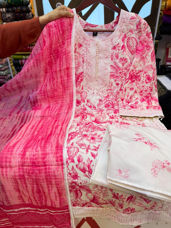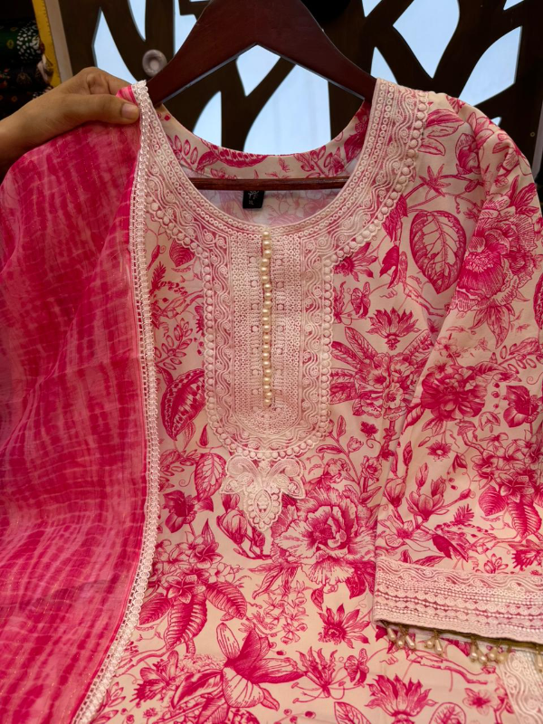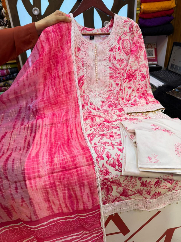 সাথে সিল্ক কোটা ফেব্রিকের দুপাট্টা ও আরামদায়ক কাটের সালোয়ার, যা প্রতিদিনের ব্যবহারে বা হালকা পার্টি ওয়্যারে পরার জন্য একদম পারফেক্ট।