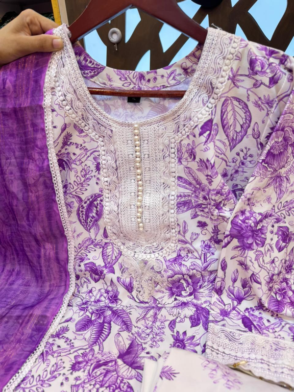 সৌন্দর্য, স্টাইল ও কমফোর্টের নিখুঁত মিশেলে তৈরি এই Dubai Silk 3 Pc Collection আপনার পোশাকে আনবে রুচিশীল গ্ল্যামার। পুরো কামিজে রয়েছে অলওভার ডিজিটাল প্রিন্ট ও কটন লেস ওয়ার্ক, সাথে ডেকোরেটিভ লেস ডিটেইলস—যা ড্রেসটিকে দিয়েছে এক্সক্লুসিভ ও প্রিমিয়াম লুক।