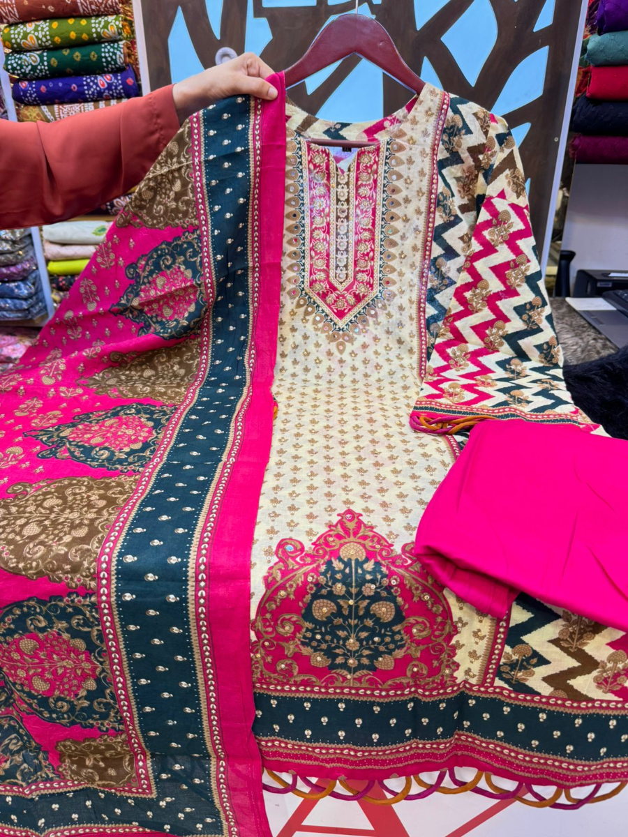 আকর্ষণীয় ডিজাইন ও আরামের সমন্বয়ে তৈরি আমাদের কটন ৩ পিস কালেকশন। কামিজে রয়েছে প্রিন্ট ও স্টোন ওয়ার্ক, যা পোশাকটিকে করে তুলেছে আরও স্টাইলিশ। সাথে রয়েছে কটন সালোয়ার এবং প্রিন্টেড কটন দুপাট্টা, যা পুরো সেটকে দিয়েছে পরিপূর্ণতা। হালকা ও নরম ফ্যাব্রিকের কারণে এটি সারাদিন পরার জন্য একেবারে আরামদায়ক।