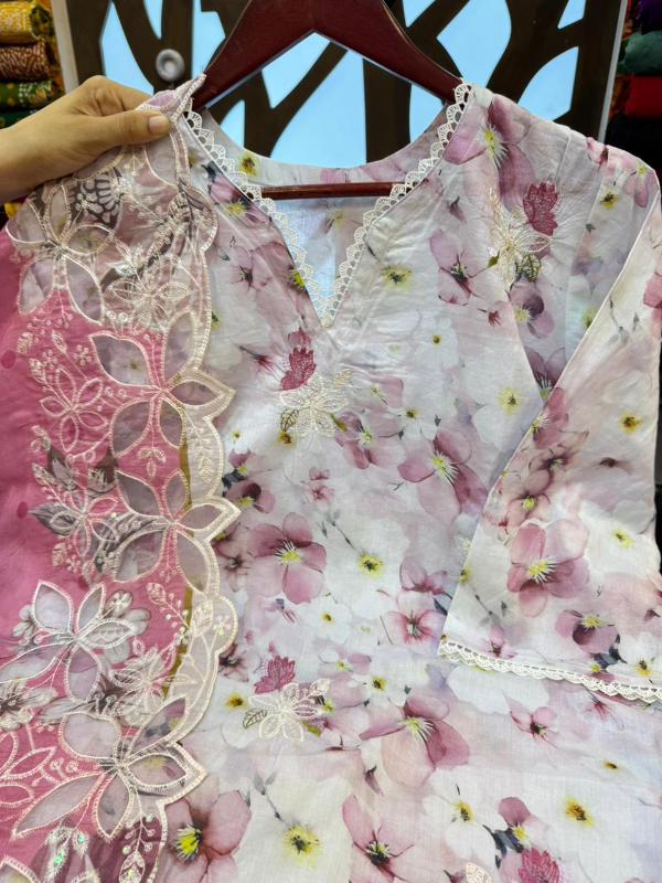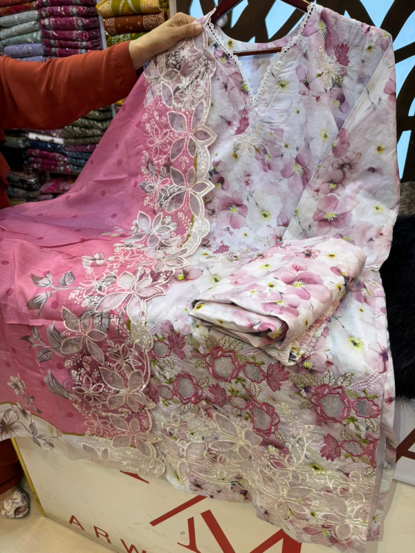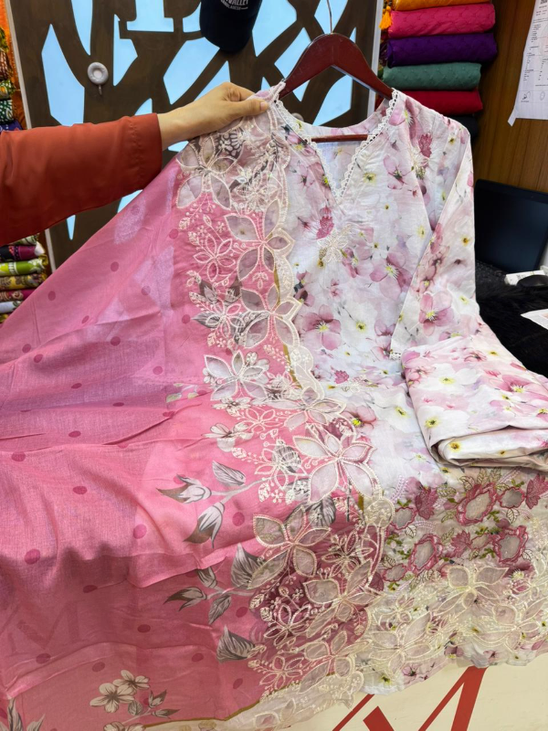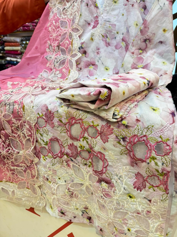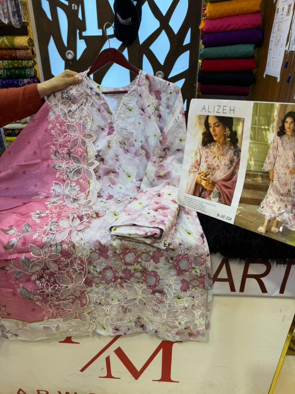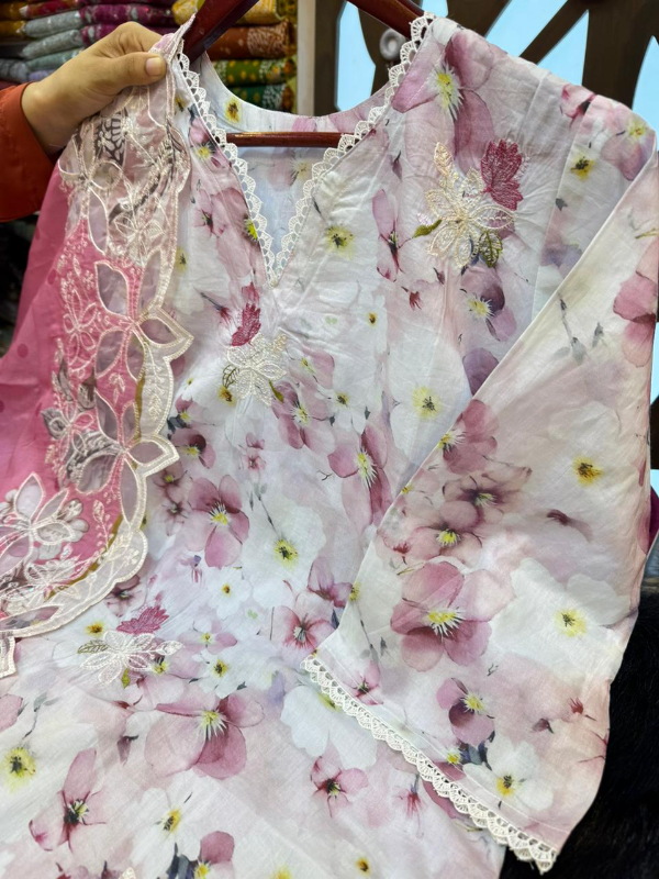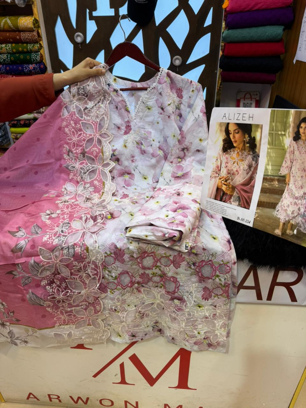 স্টাইলিশ ও এলিগ্যান্ট এই কালেকশন তৈরি করা হয়েছে প্রিমিয়াম সুইস লন কামিজ ও সালোয়ার দিয়ে। কামিজে রয়েছে ডিজিটাল প্রিন্ট, এমব্রয়ডারি ও সিকোয়েন্স ওয়ার্ক এবং অ্যাটাচড প্যানেল প্যাচেস, যা পুরো সেটকে দিয়েছে একটি অনন্য লুক। দুপাট্টা কটন এমব্রয়ডারি ও সিকোয়েন্স ওয়ার্কে সমৃদ্ধ, যা পোশাকটিকে আরও স্টাইলিশ করেছে।