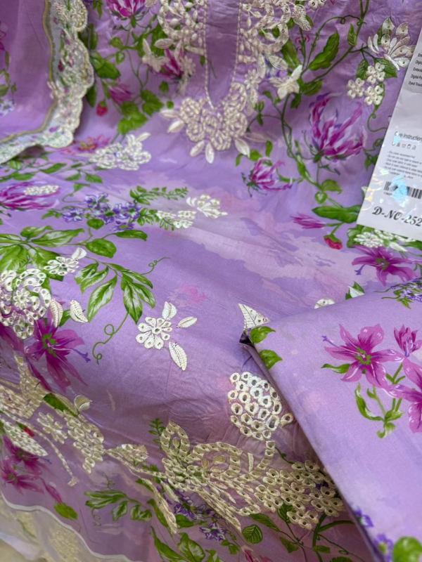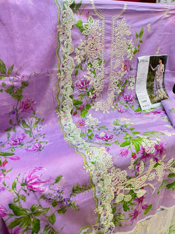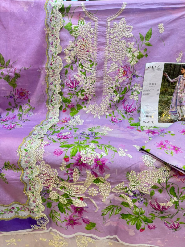 অভিজাত ও স্টাইলিশ এই কালেকশন তৈরি হয়েছে প্রিমিয়াম সুইস লন ফেব্রিক দিয়ে। কামিজ ও সালোয়ার দুটোই সুইস লন, সাথে রয়েছে কটন দুপাট্টা যেখানে রয়েছে এম্ব্রয়ডারি ও সিকোয়েন্স কাজ। কামিজে ডিজিটাল প্রিন্টের সাথে এম্ব্রয়ডারি ও সিকোয়েন্স ওয়ার্ক এবং অ্যাটাচড প্যানেল প্যাচ যুক্ত আছে, যা আউটফিটকে দিয়েছে প্রিমিয়াম ও এক্সক্লুসিভ লুক।