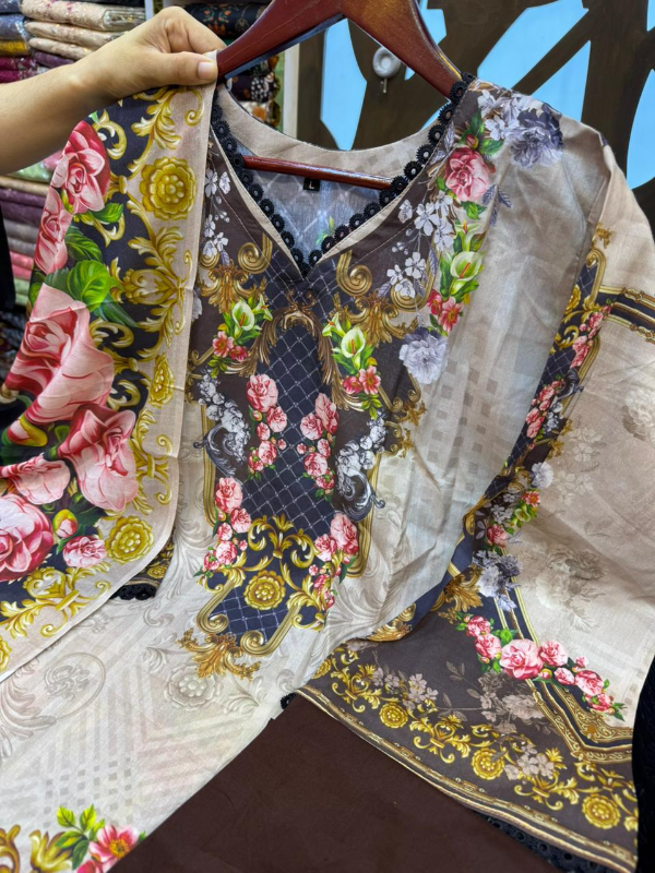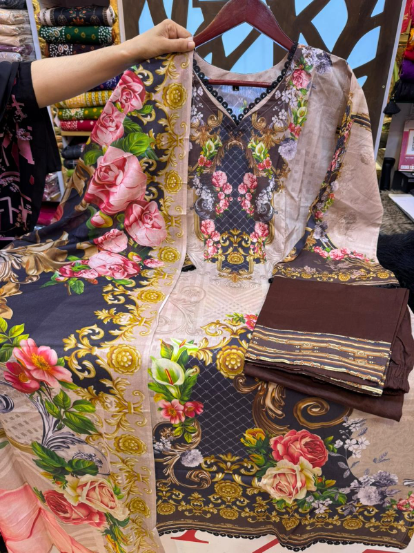 ডেইলি ওয়্যার ও ক্যাজুয়াল আউটিংয়ের জন্য পারফেক্ট এই কটন থ্রি পিস কালেকশনটি তৈরি করা হয়েছে সফট ও লাইটওয়েট সুইস লন ফেব্রিকে। কামিজে রয়েছে অল ওভার ডিজিটাল প্রিন্ট যা দিচ্ছে আকর্ষণীয় ও ফ্রেশ লুক। সাথে আছে কটন প্রিন্টেড দুপাট্টা ও আরামদায়ক কটন সালোয়ার, যা প্রতিদিনের ব্যবহারেও আরাম ও স্টাইল বজায় রাখবে।