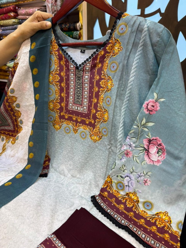 ডেইলি ওয়্যার ও ক্যাজুয়াল আউটিংয়ের জন্য পারফেক্ট এই কটন থ্রি পিস কালেকশনটি তৈরি করা হয়েছে সফট ও লাইটওয়েট সুইস লন ফেব্রিকে। কামিজে রয়েছে অল ওভার ডিজিটাল প্রিন্ট যা দিচ্ছে আকর্ষণীয় ও ফ্রেশ লুক। সাথে আছে কটন প্রিন্টেড দুপাট্টা ও আরামদায়ক কটন সালোয়ার, যা প্রতিদিনের ব্যবহারেও আরাম ও স্টাইল বজায় রাখবে।