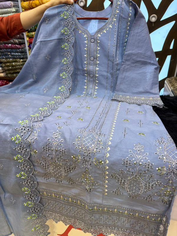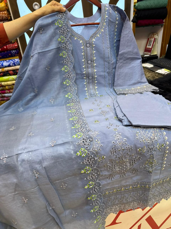 স্টাইলিশ ও এলিগ্যান্ট এই কালেকশন তৈরি করা হয়েছে প্রিমিয়াম সুইস লন সলিড ফ্যাব্রিক দিয়ে। কামিজে রয়েছে এম্ব্রয়ডারি ও বোরিং ওয়ার্ক, যা পোশাকটিকে দিয়েছে এক্সক্লুসিভ লুক। দুপাট্টায় রয়েছে কটন এম্ব্রয়ডারি ও সিকোয়েন্স ওয়ার্ক, সাথে যুক্ত কটন ইনার যা পরতে আরও আরামদায়ক। নরম ও হালকা ফ্যাব্রিকের কারণে এটি সারাদিন ব্যবহারেও স্বাচ্ছন্দ্য বজায় রাখে।