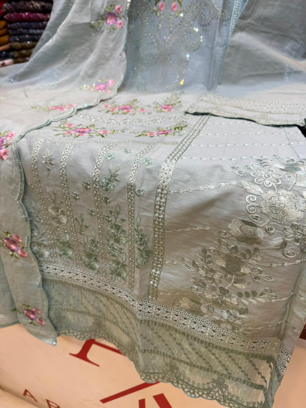 স্টাইলিশ ও এলিগ্যান্ট এই কালেকশন তৈরি করা হয়েছে প্রিমিয়াম সুইস লন সলিড ফ্যাব্রিক দিয়ে। কামিজে রয়েছে এম্ব্রয়ডারি ও বোরিং ওয়ার্ক, যা পোশাকটিকে দিয়েছে এক্সক্লুসিভ লুক। দুপাট্টায় রয়েছে কটন এম্ব্রয়ডারি ও সিকোয়েন্স ওয়ার্ক, সাথে যুক্ত কটন ইনার যা পরতে আরও আরামদায়ক। নরম ও হালকা ফ্যাব্রিকের কারণে এটি সারাদিন ব্যবহারেও স্বাচ্ছন্দ্য বজায় রাখে।