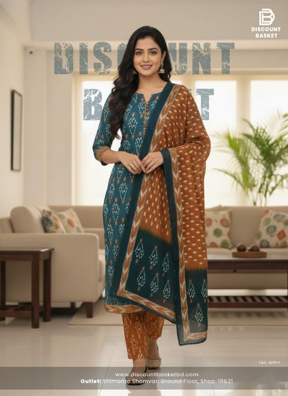 স্টাইলিশ ডিজাইন ও কমফোর্টের সুন্দর মিশেলে তৈরি এই প্যাটেল ইনস্পায়ার্ড কালেকশনটি। সফট ও লাইটওয়েট জয়পুরি প্রিন্টেড কামিজের সাথে রয়েছে কটন প্রিন্টেড সালোয়ার ও দুপাট্টা—যা পুরো সেটটিকে করেছে আকর্ষণীয়, রঙিন ও সারাদিন পরার উপযোগী।মূল্য: ১৪৯৯ টাকা (স্টিচড ও রেডি টু ওয়্যার)সাইজ: ৩৮ / ৪২ / ৪৬কামিজ লম্বা: ৪১–৪২ ইঞ্চিস্লিভ: ১৮–২০ ইঞ্চিফ্যাব্রিক:কামিজ: জয়পুরি প্রিন্টেড ডিজাইনসালোয়ার: কটন প্রিন্টেড ডিজাইনদুপাট্টা: কটন প্রিন্টেড ফেব্রিককেন এই ড্রেসটি আপনার জন্য পারফেক্ট?জয়পুরি প্রিন্ট – দেয় ঐতিহ্যবাহী অথচ ট্রেন্ডি লুকসফট ও লাইটওয়েট ফেব্রিক – সারাদিন পরার জন্য আদর্শপ্রিন্টেড সালোয়ার ও দুপাট্টা – সম্পূর্ণ ম্যাচিং সেটরেডি টু ওয়্যার – ঝামেলাহীন ব্যবহারে উপযোগীক্যাজুয়াল, অফিস বা ডে আউটের জন্য একদম উপযুক্ত