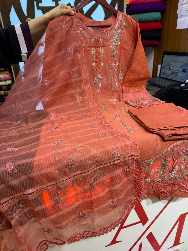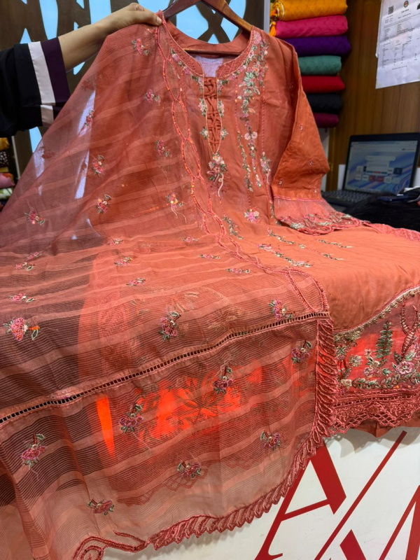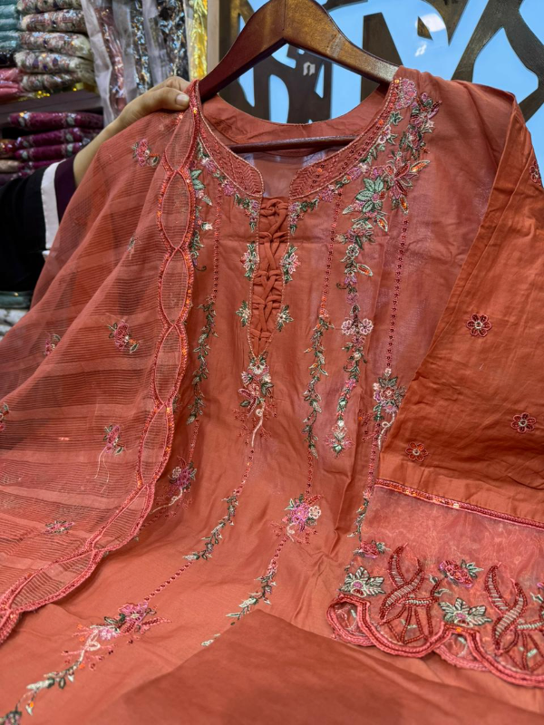 আভিজাত্যের ছোঁয়া নিয়ে এসেছে আমাদের বিশেষ পাকিস্তানি ইনস্পায়ার্ড কালেকশন। উচ্চমানের প্রিমিয়াম সুইস লন সলিড কালার ফ্যাব্রিকের উপর এমব্রয়ডারি ও বোরিং ওয়ার্ক করা হয়েছে, যা পোশাকটিকে করে তুলেছে আরও আকর্ষণীয়। দুপাট্টায় রয়েছে কোটা প্রিন্ট ও এমব্রয়ডারি ওয়ার্ক, যা পুরো সেটে যোগ করেছে বাড়তি শোভা। নরম ও হালকা ওজনের কাপড়ের কারণে এটি গরমেও আরামদায়ক এবং সারাদিন স্বাচ্ছন্দ্যে পরা যায়।