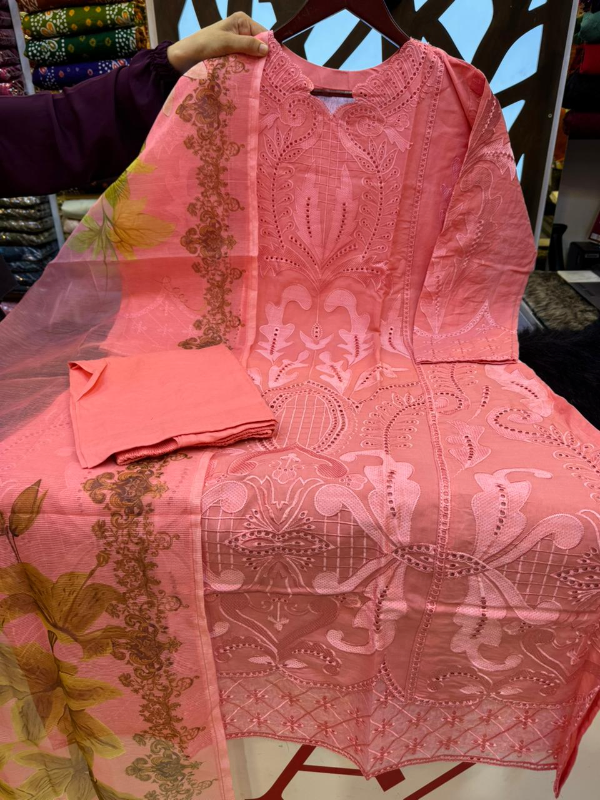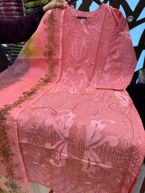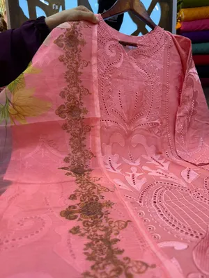 এলিগ্যান্ট ও গর্জিয়াস লুকের জন্য এই পাকিস্তানি ইনস্পায়ার্ড কালেকশন হতে পারে আপনার সেরা পছন্দ। প্রিমিয়াম সুইস লন ফ্যাব্রিক এ তৈরি কামিজে রয়েছে মনোমুগ্ধকর এমব্রয়ডারি ও বোরিং ওয়ার্ক, যা পোশাকটিকে করে তুলেছে আরও আকর্ষণীয়। সাথে কোটা প্রিন্টেড ও এমব্রয়ডারি কাজ করা দুপাট্টা পুরো সেটকে দিয়েছে একটি অনন্য মাত্রা।