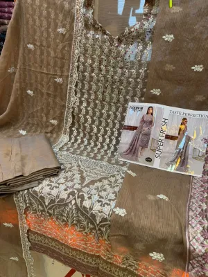 Swizz Lawn Embroidered & Lace Work 3-Piece Set