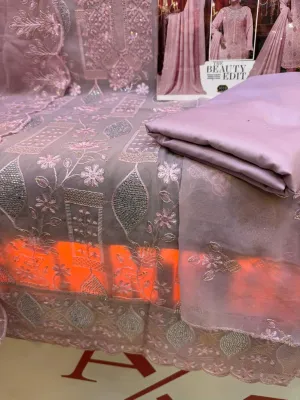 Luxury Unstitched Party Dress in Premium Chiffon Georgette Fabric