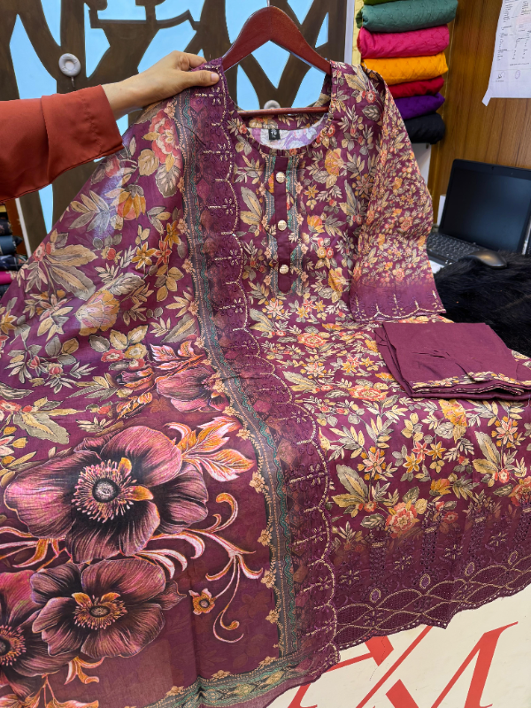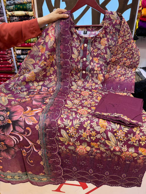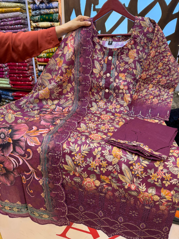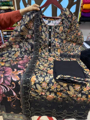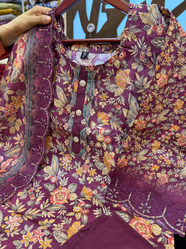 Dupatta- Cotton Printed Design With Embroidery & Sequence Work