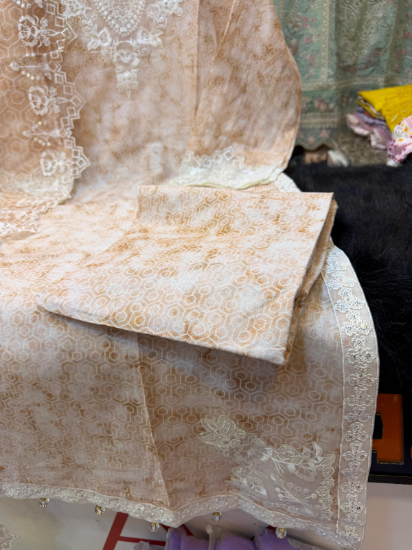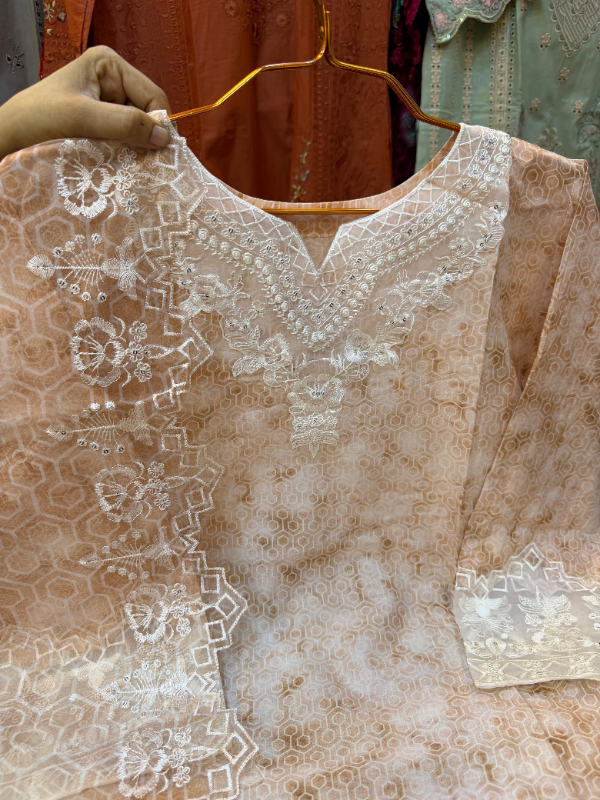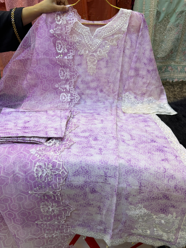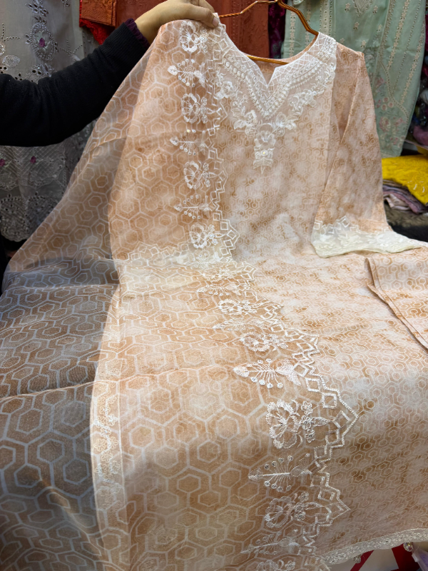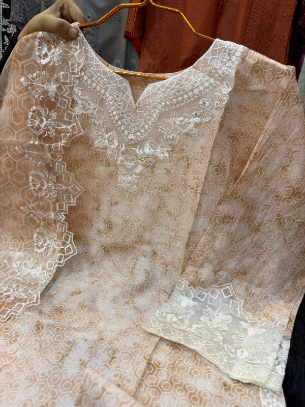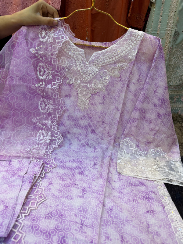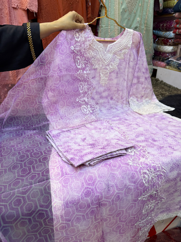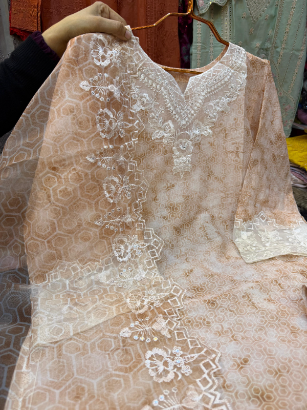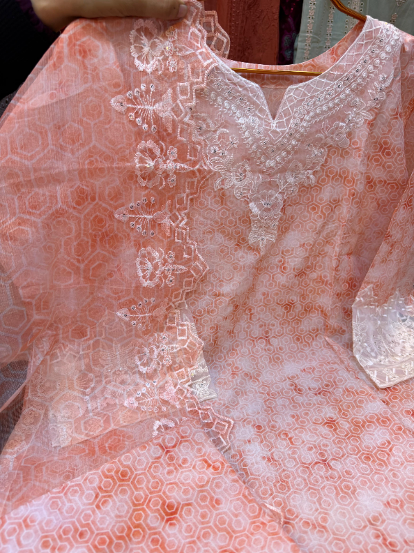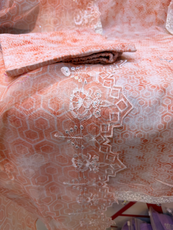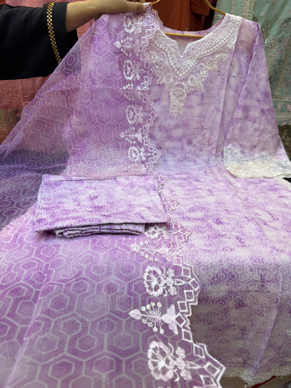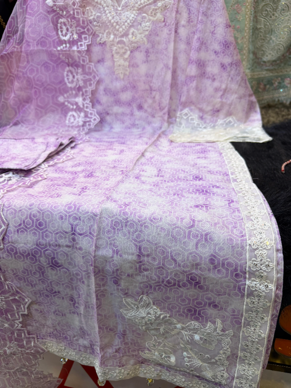 Dupatta-Organza Leasure Cut (Digital Print+Embroidery +Sequence Work)
