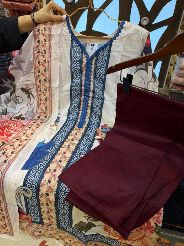 Elegant Swizz Cotton Suit with Panel Embroidery Work