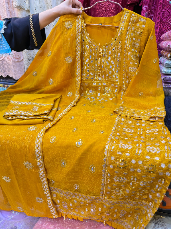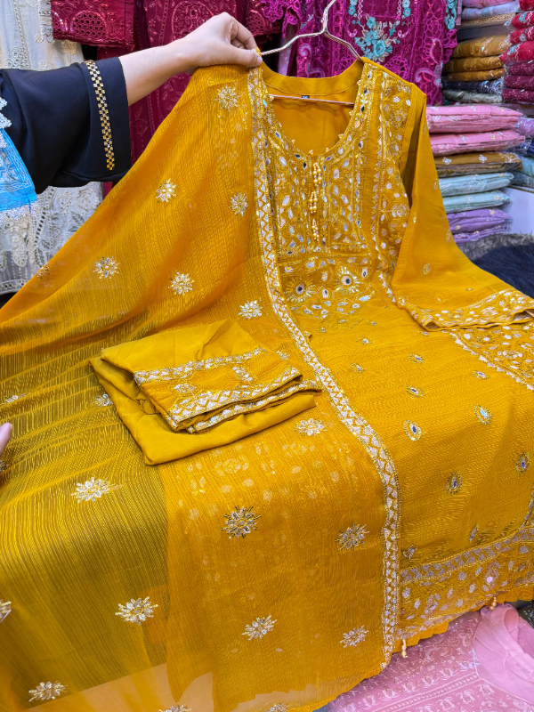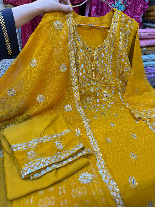 Dupatta-White Gold (Sequence +Embroidery Work)