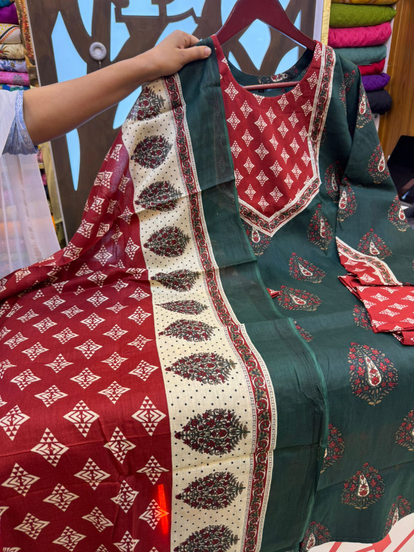 Joypuri Cotton Collection – Printed & Lace Work Dress