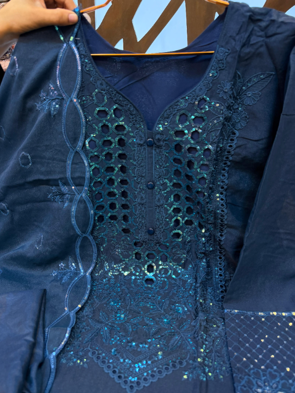 Pakistani Swizz Cotton Long Suit with Embroidered Quata Dupatta