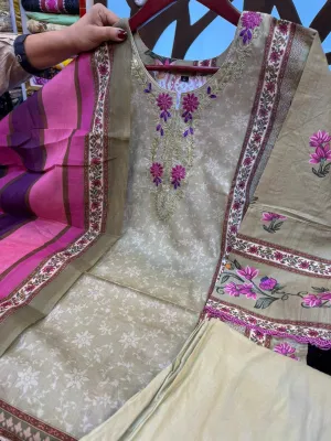 Elegant Organza Lace Detailing Swiss Lawn Suit.