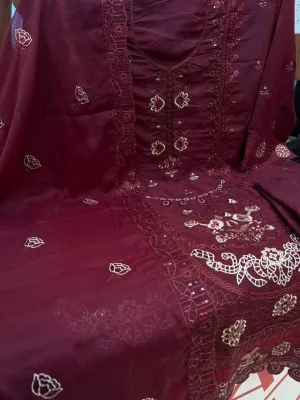 Swizz Lawn Embroidered & Lace Work 3-Piece Set
