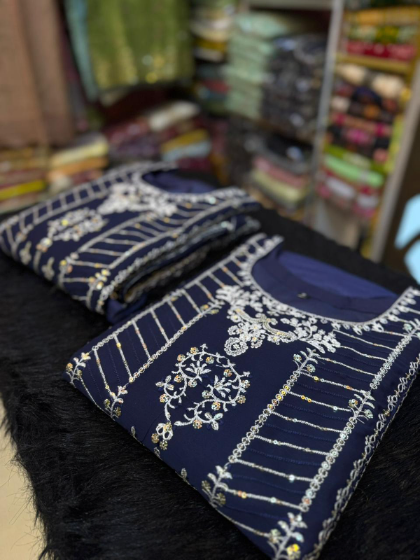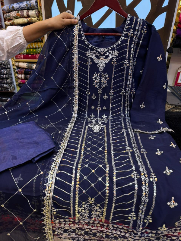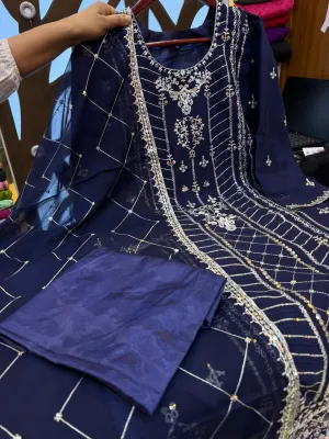 Premium Slub Cotton 3-Piece – Embroidery & Sequence Work