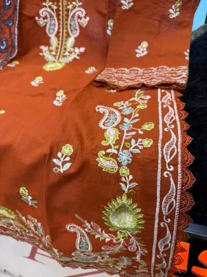 Fully stitched Swiss Lawn ensemble featuring premium embroidery and lace.