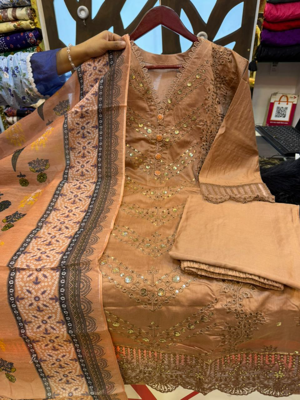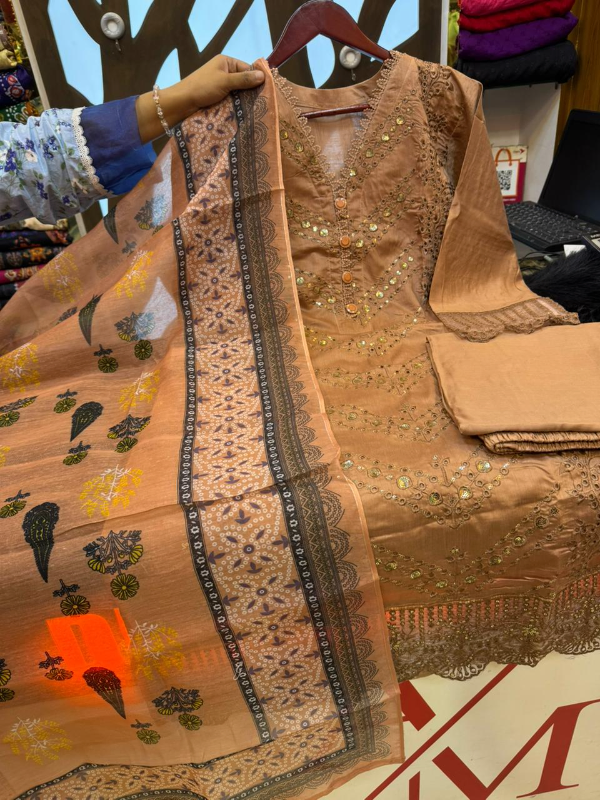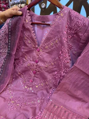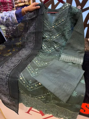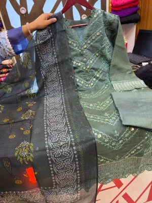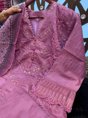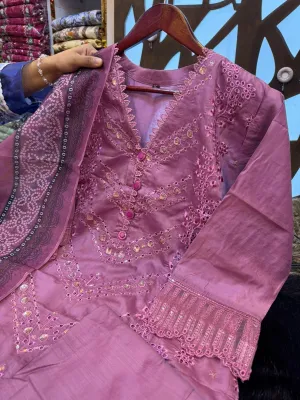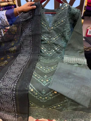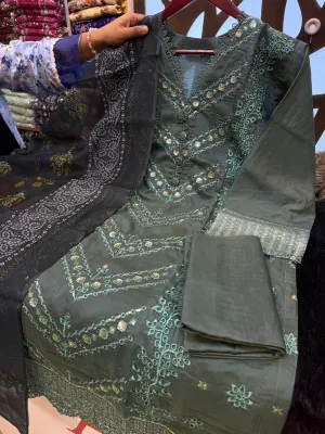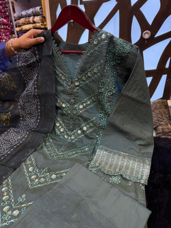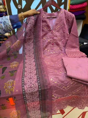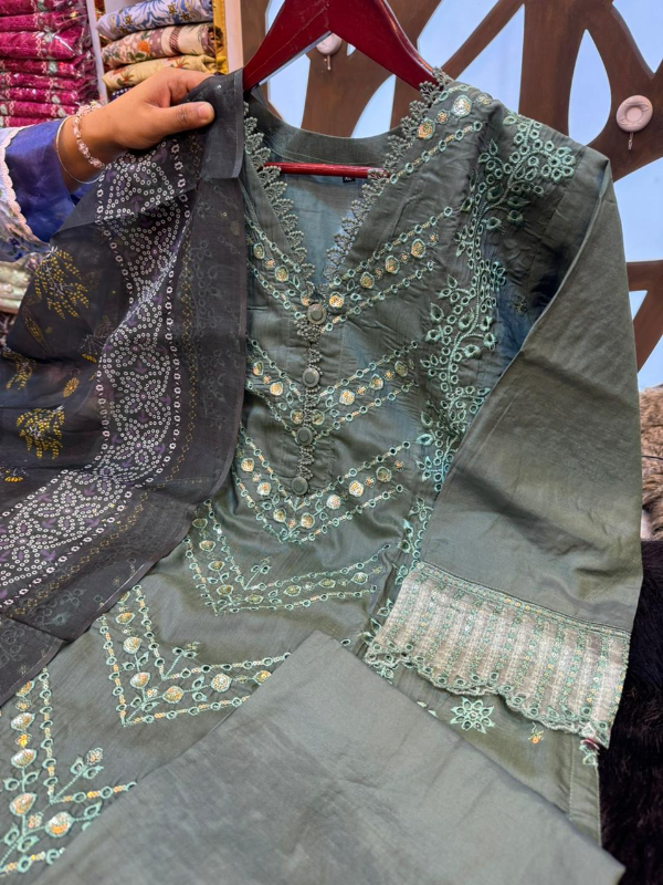 Premium Slub Cotton 3-Piece – Embroidery & Sequence Work