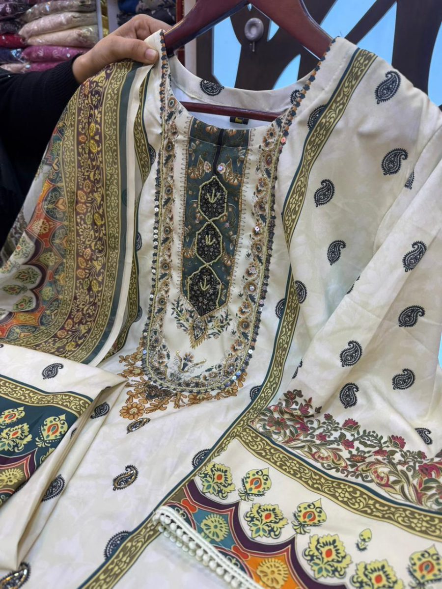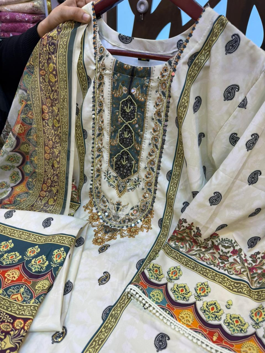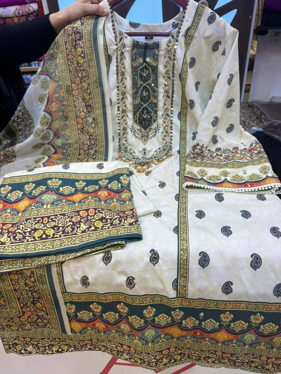 Premium Dubai Cherry Silk Mirror Work Stitched Dress