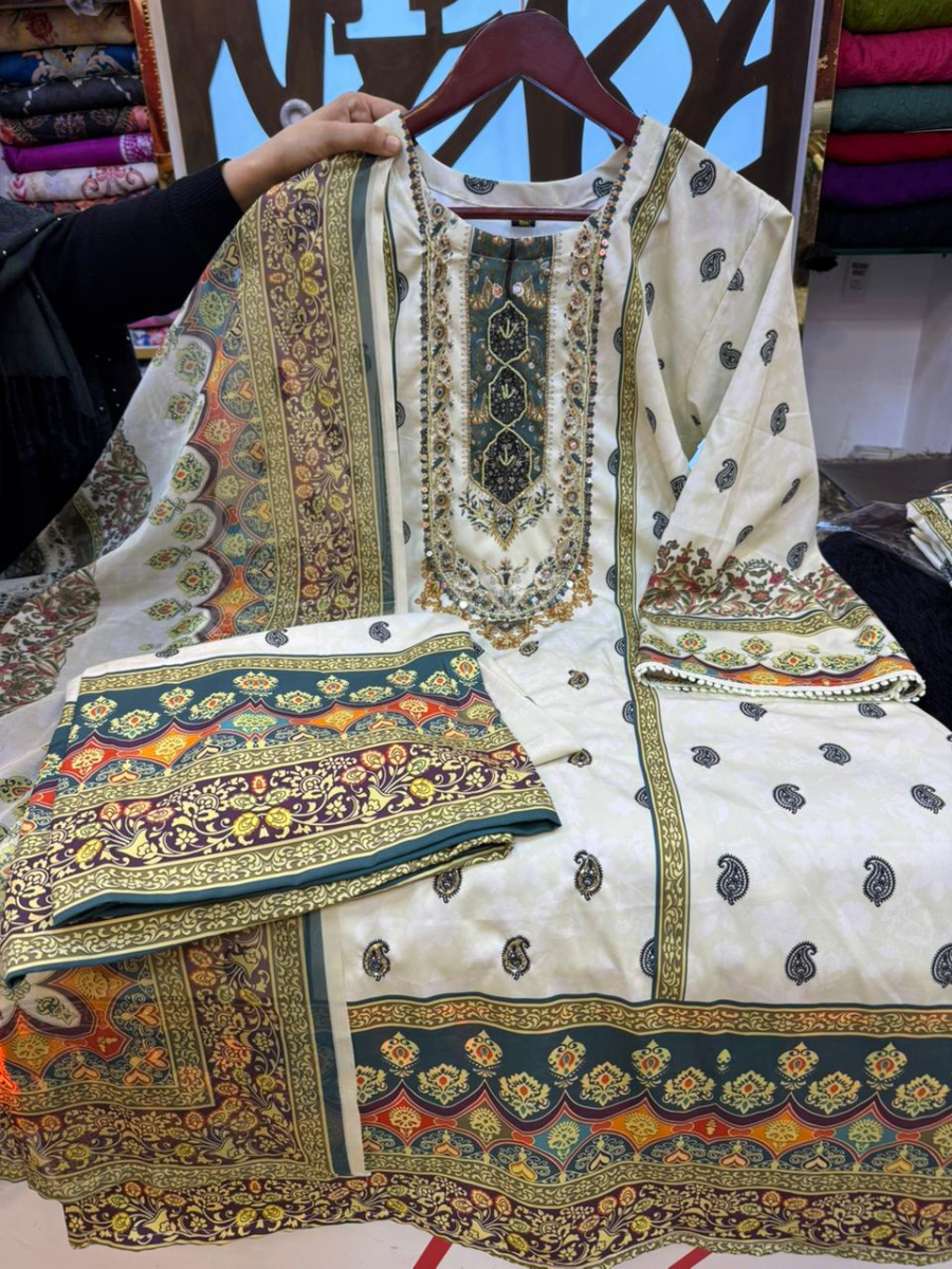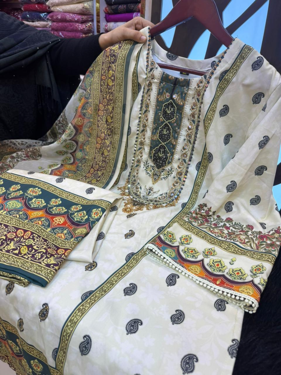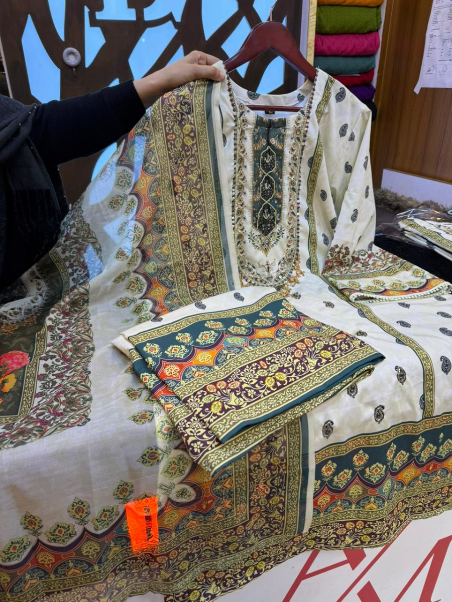 Premium Dubai Cherry Silk Mirror Work Stitched Dress