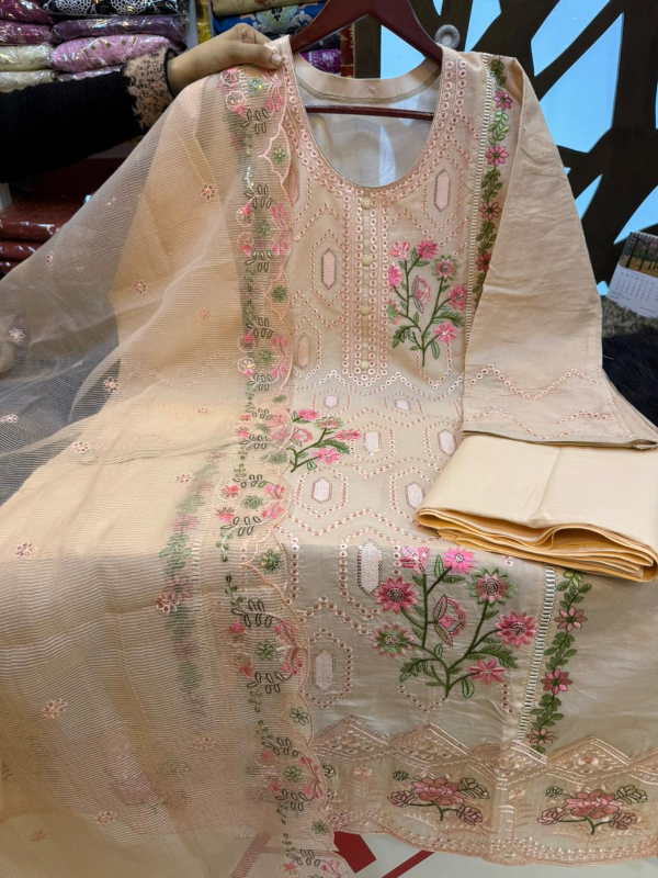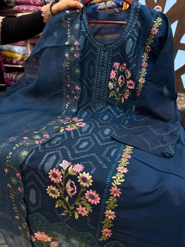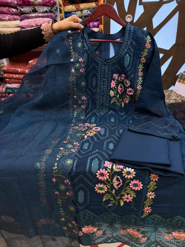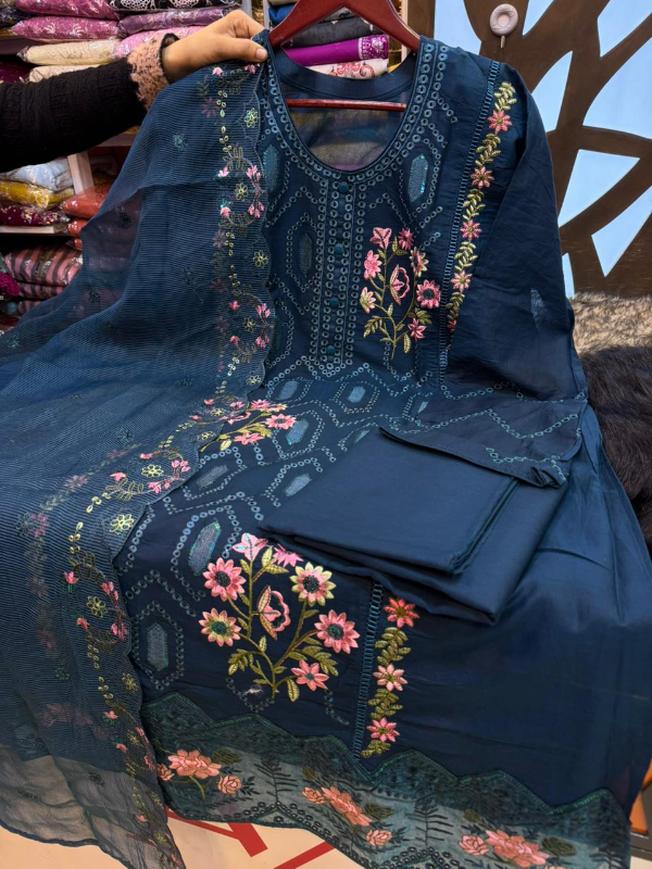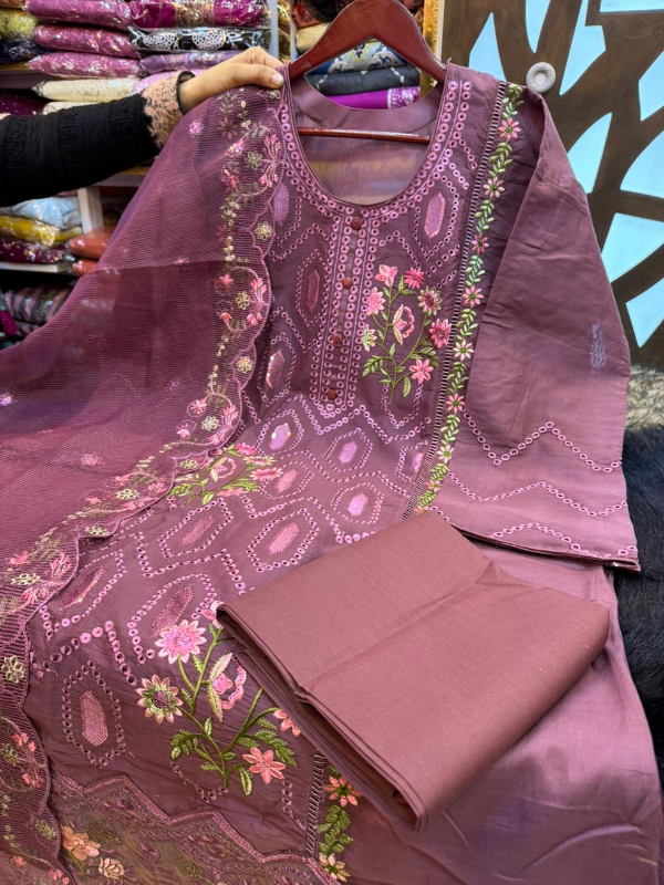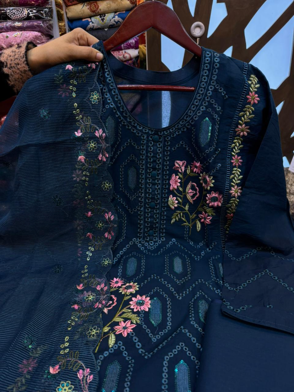 Salwar-Cotton Solid Color Panel Embroidery Work