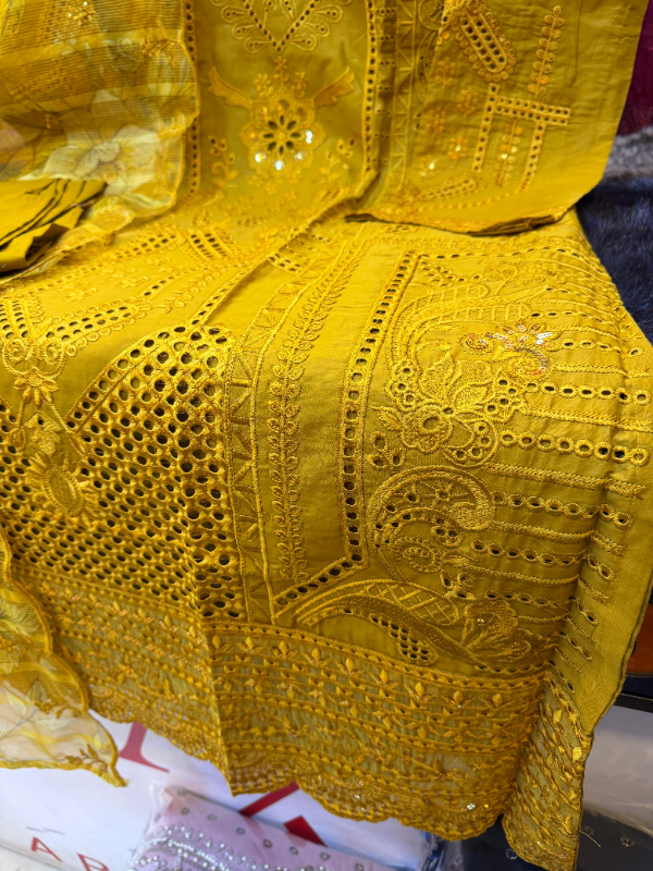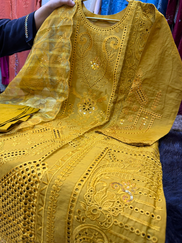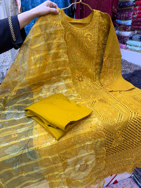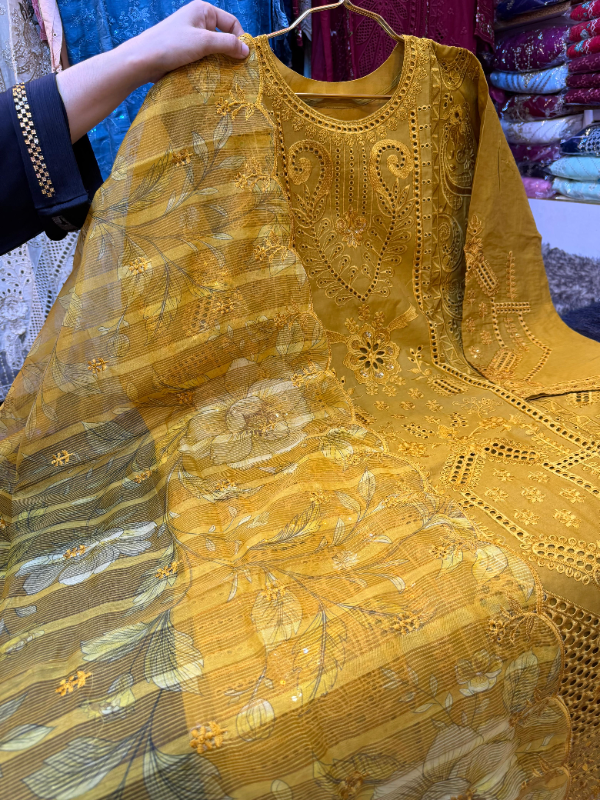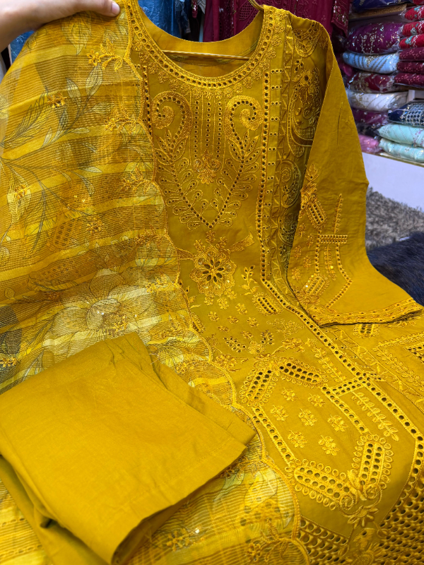 Swizz Cotton Festive Suit with Embroidered Quata Dupatta