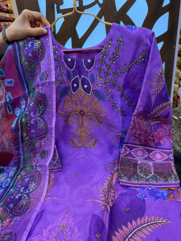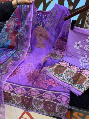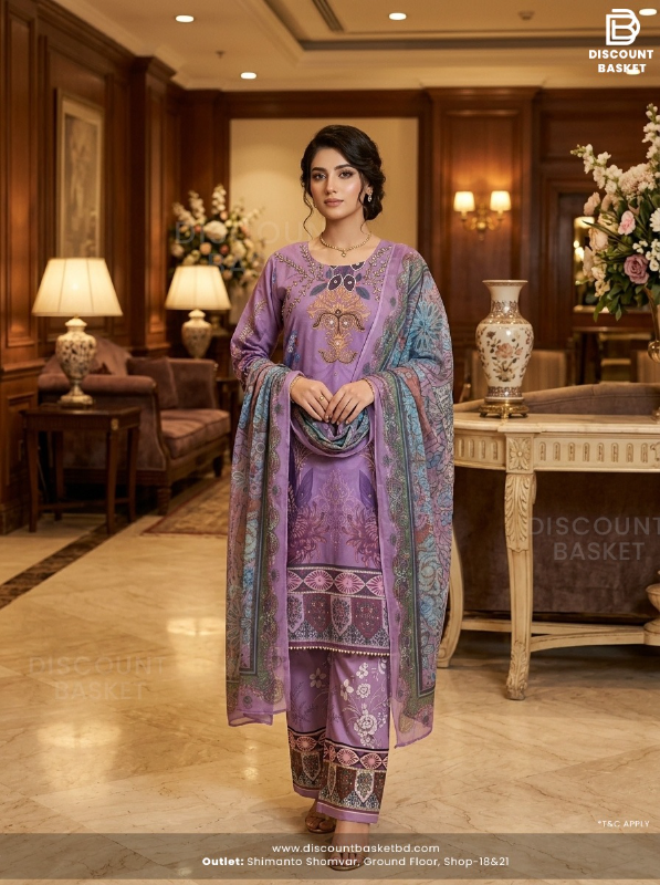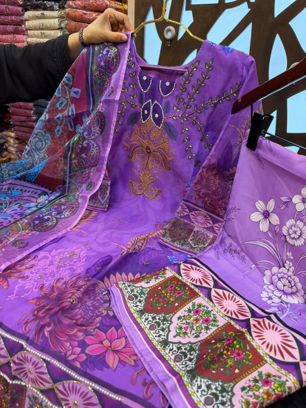 Premium Swizz Cotton Suit with Boring and Embroidery Detail