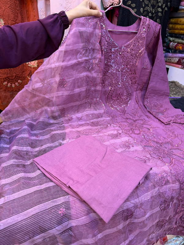 Pakistani Swizz Cotton Festive Suit with Quata Dupatta