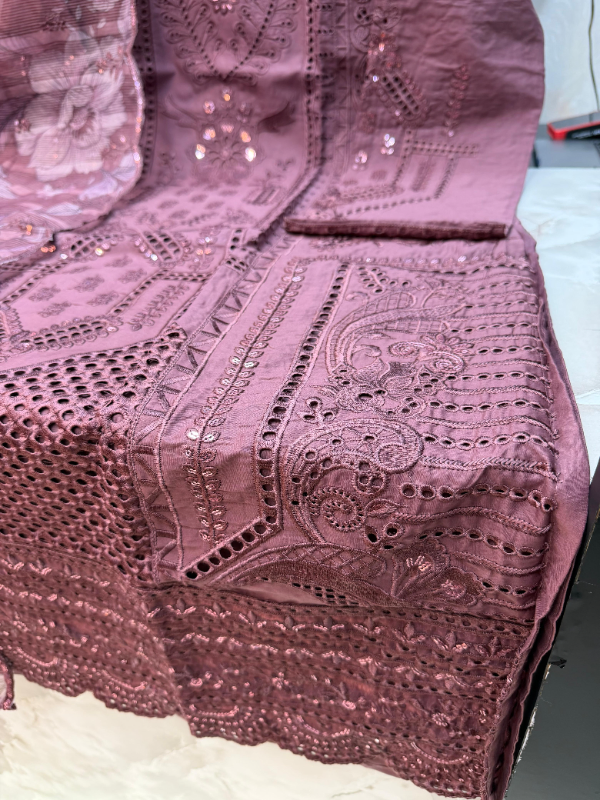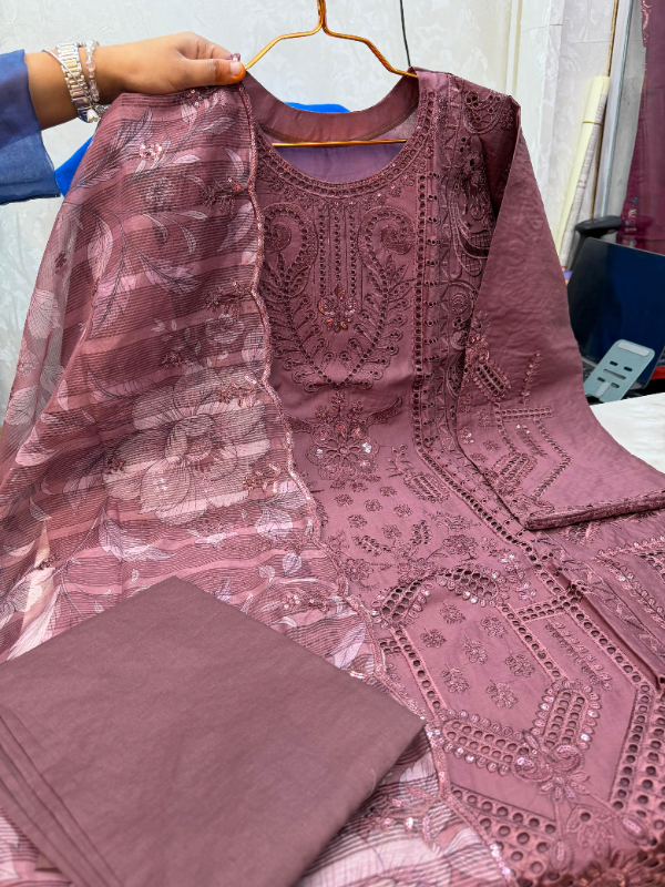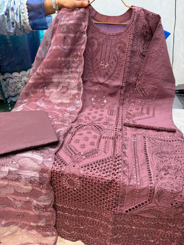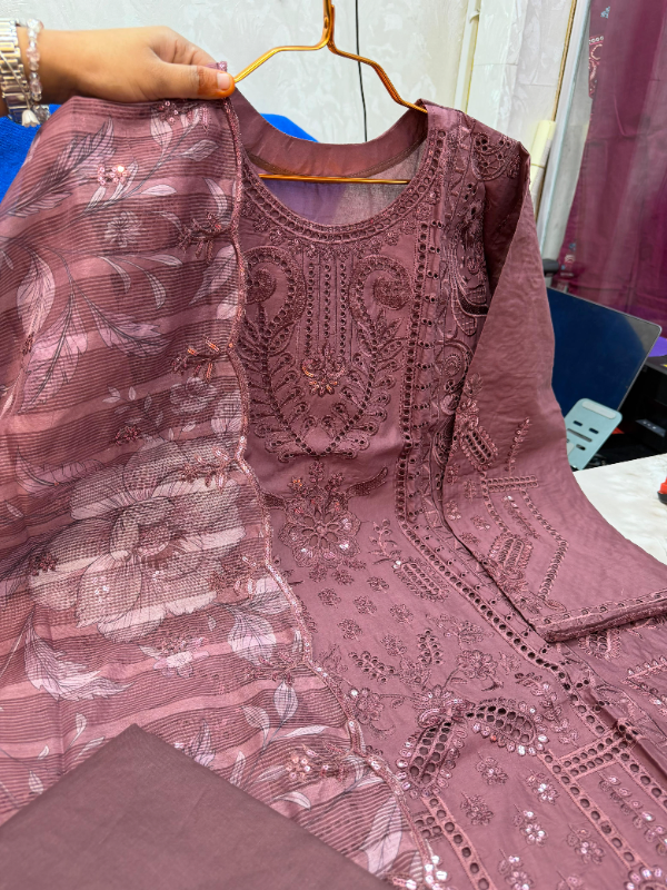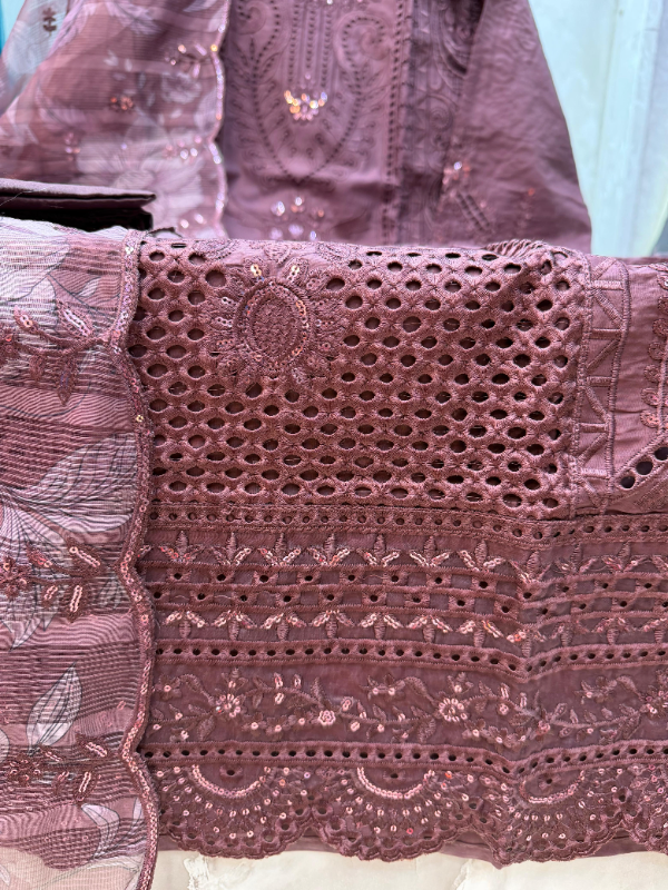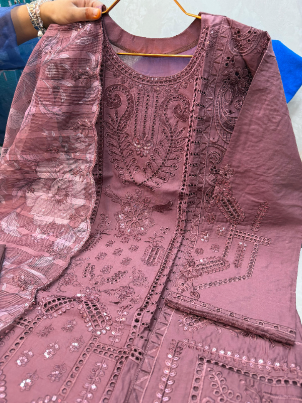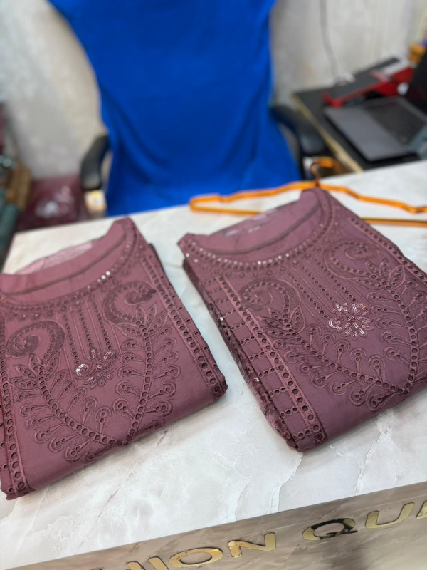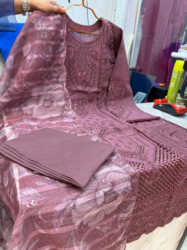 Pakistani Swizz Cotton Long Suit with Embroidered Quata Dupatta