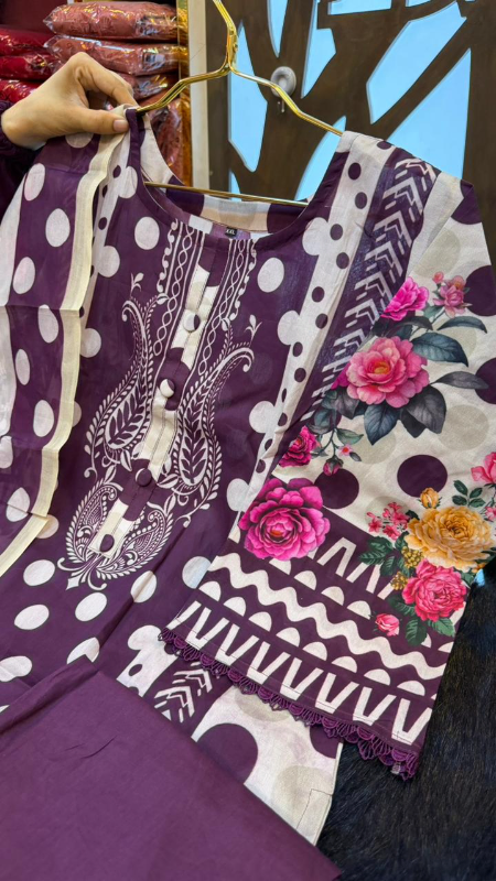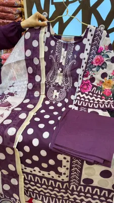 Pakistani Swizz Cotton Printed Suit with Palazzo Salwar