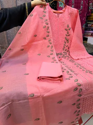 Dupatta-Cotton (Printed & Embroidery Sequence Work Design)