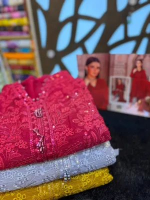 Swizz Lawn Embroidered & Lace Work 3-Piece Set