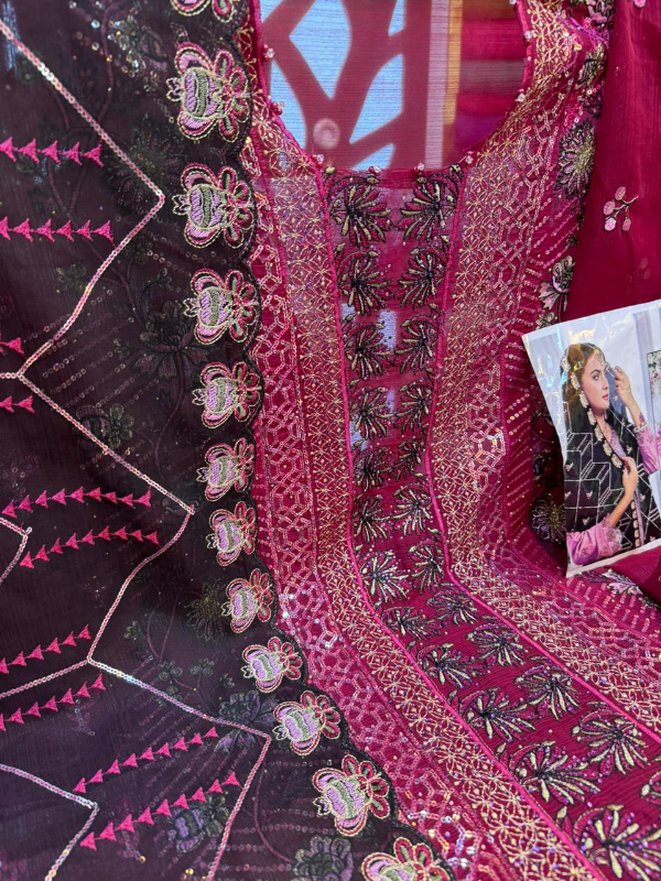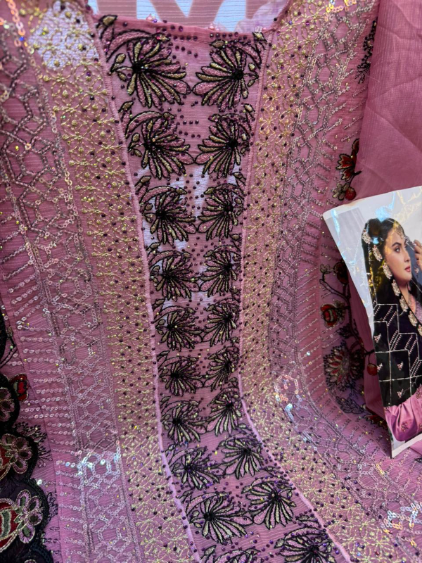 Luxury Unstitched Party Dress in Premium Chiffon Georgette Fabric