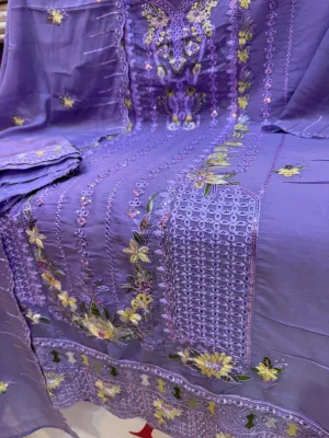 Luxury Unstitched Party Dress in Premium Chiffon Georgette Fabric