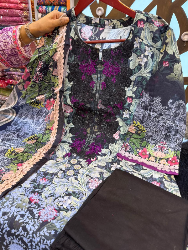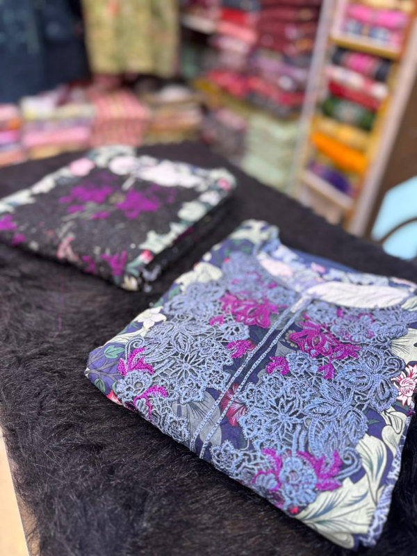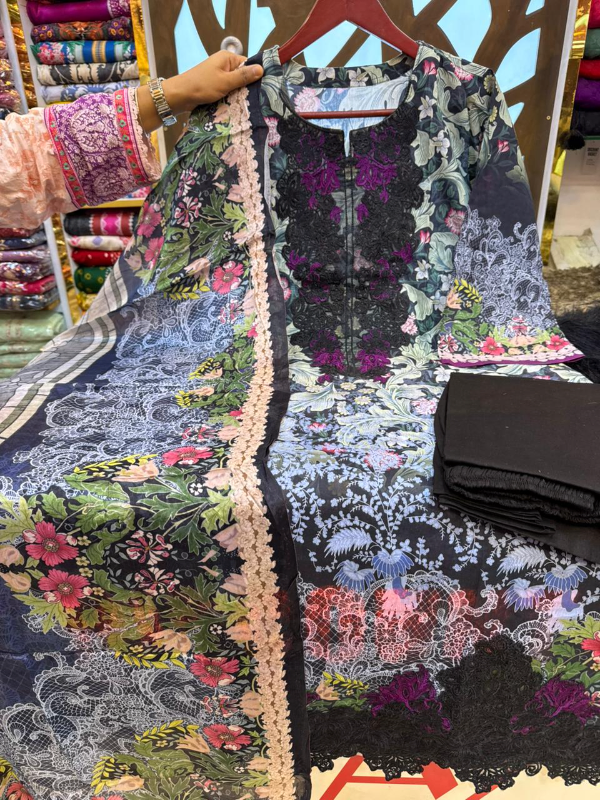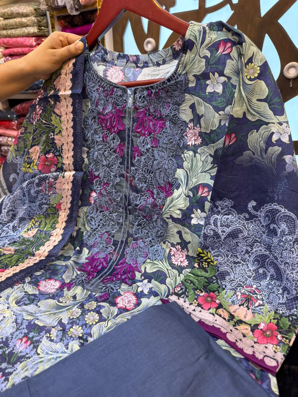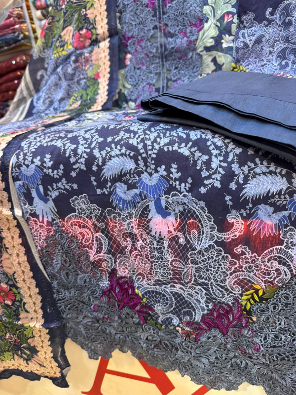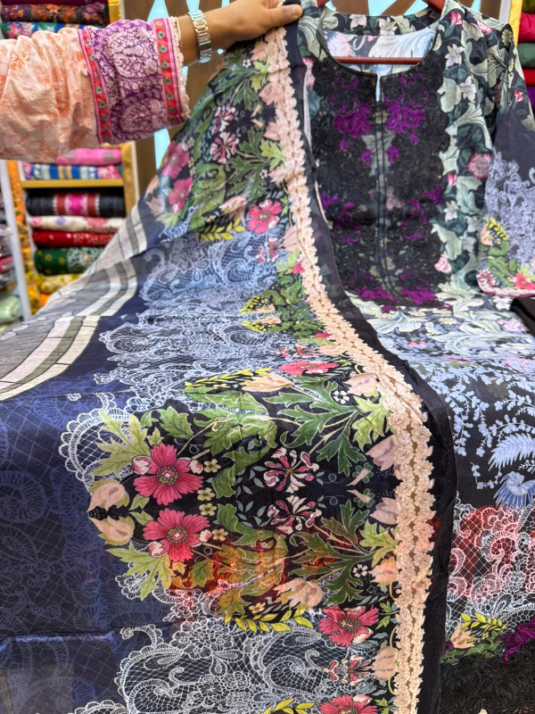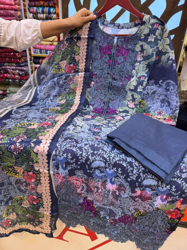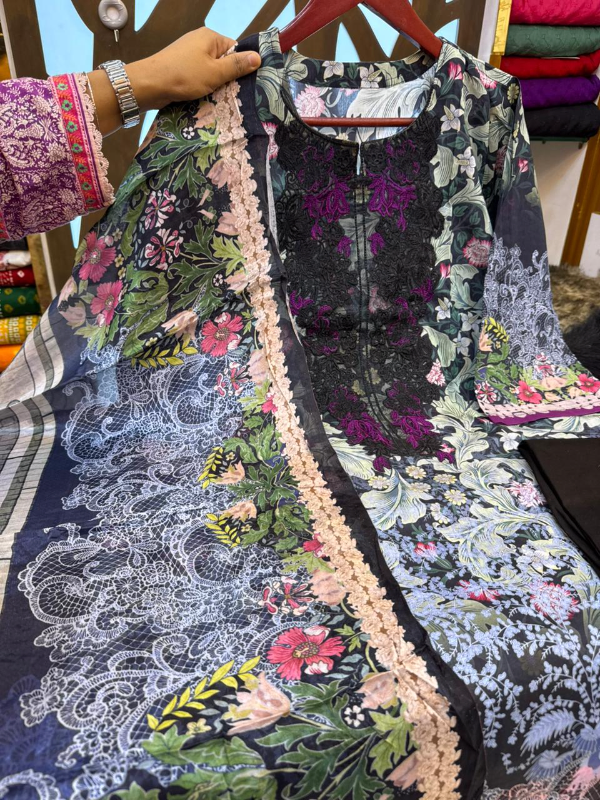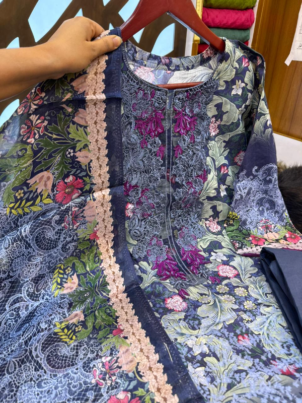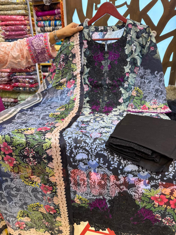 Pakistani Inspired Swizz Lawn Dress with Embroidery & Lace Work