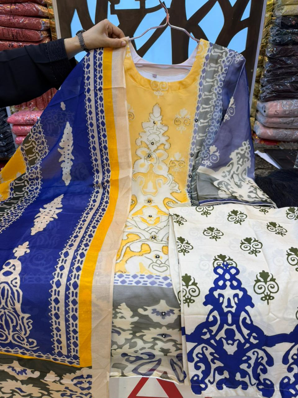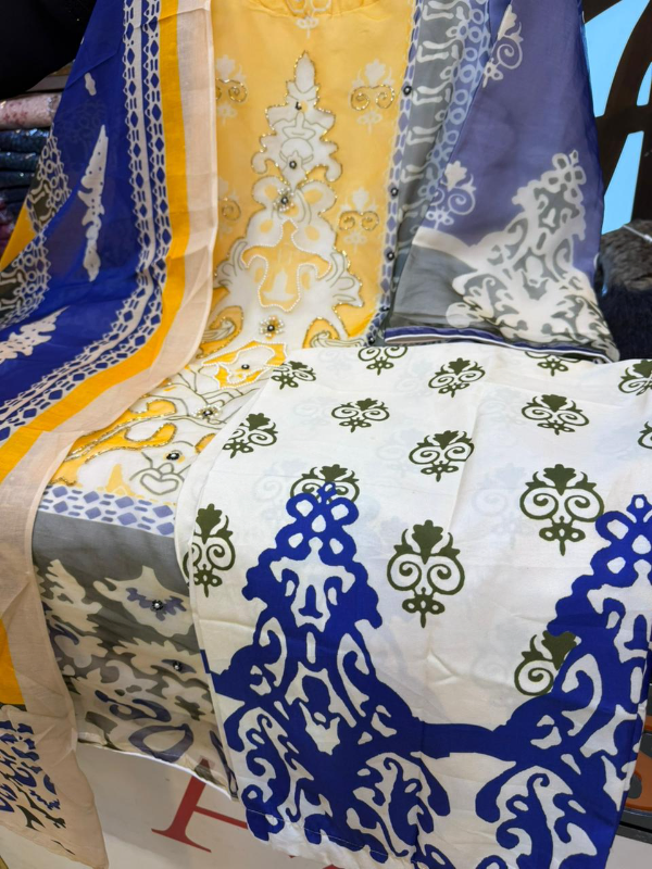 Premium Swizz Cotton Suit with Boring and Embroidery Detail