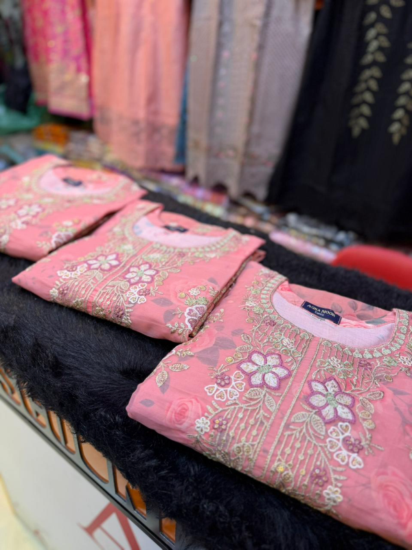 Pakistani Rayon Cotton Suit with Multicolor Thread Embroidery