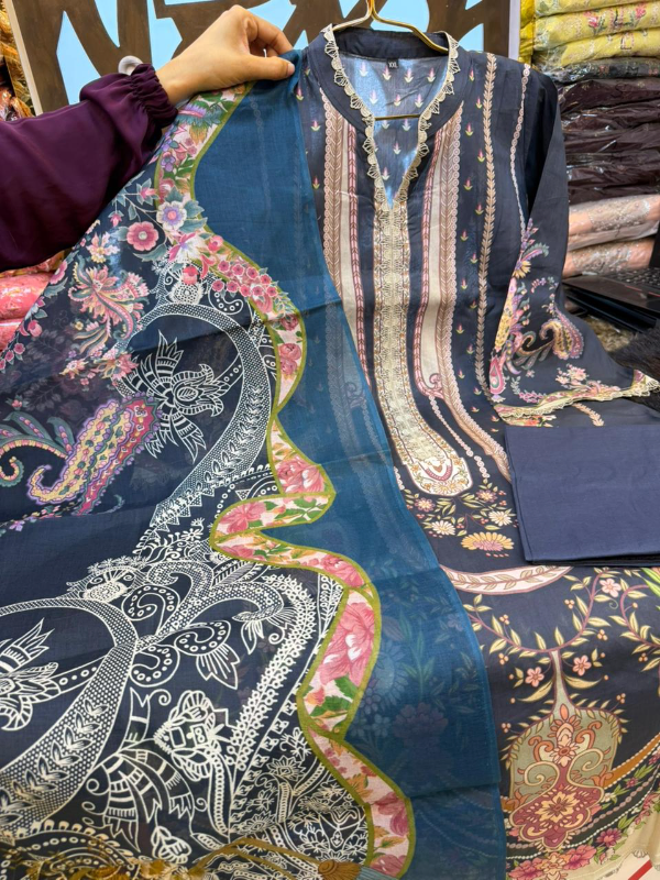 Dupatta-Cotton Printed Design (Printed & Embroidery Sequence Work Design)