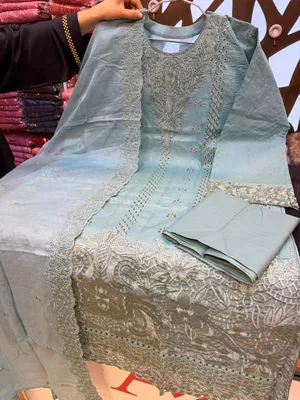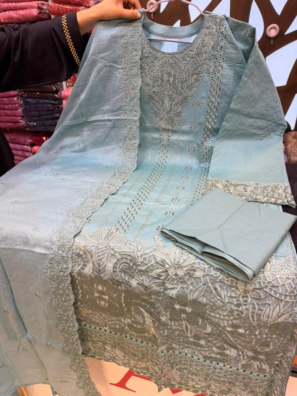 Premium Swizz Cotton Suit with Boring and Embroidery Work
