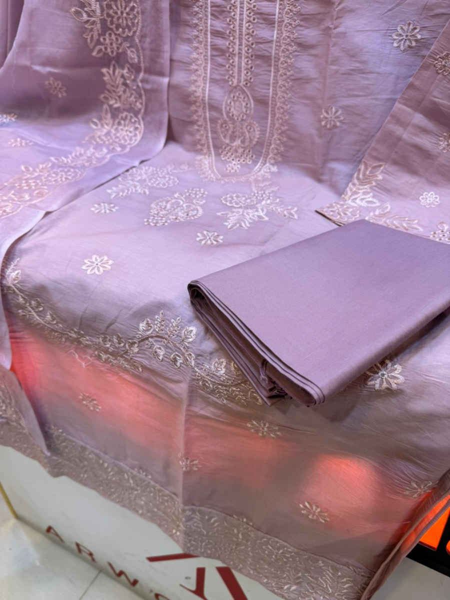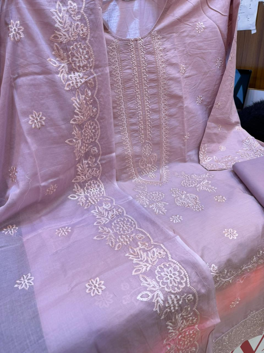 Premium Swizz Lawn Solid Embroidered 3Pc