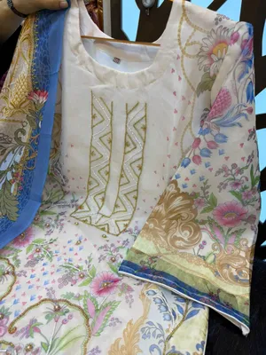 Printed Swizz Cotton Set with Designer Neck Panel Work