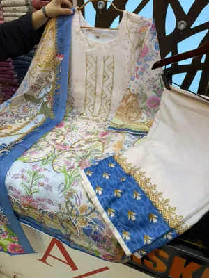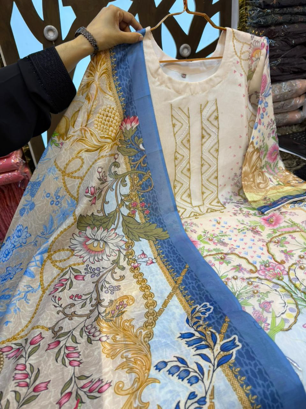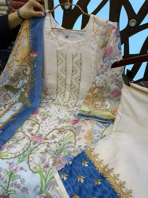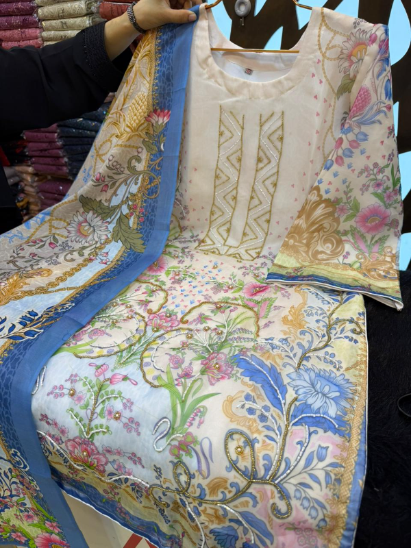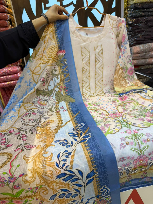Premium Swizz Cotton Suit with Boring and Embroidery Detail