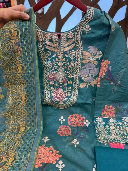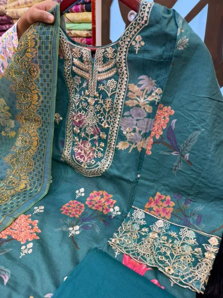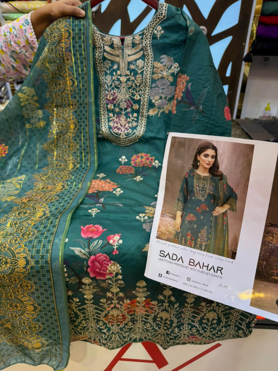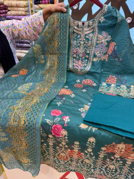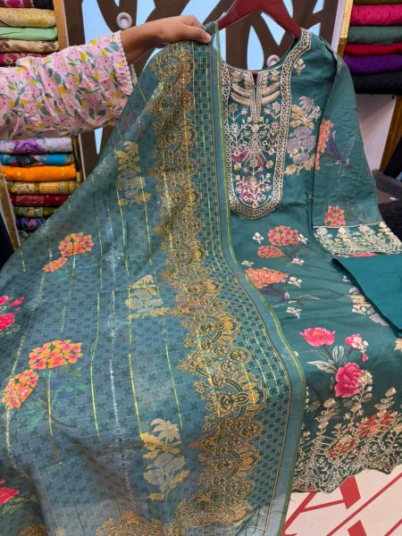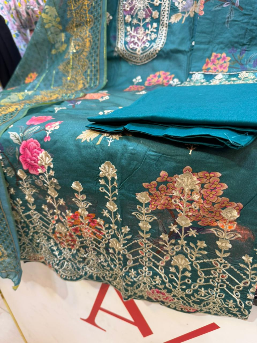 Elegant Organza Lace Detailing Swiss Lawn Suit.