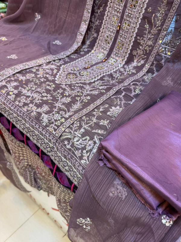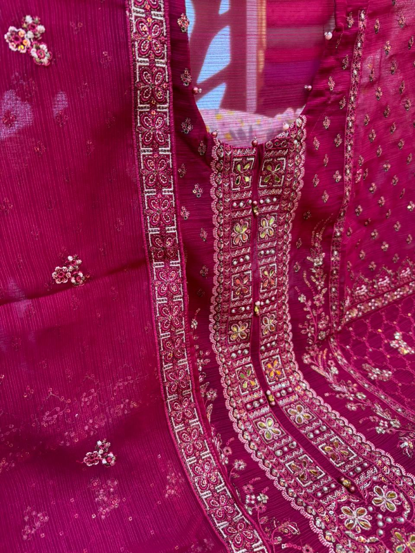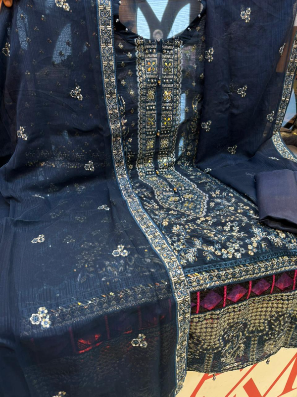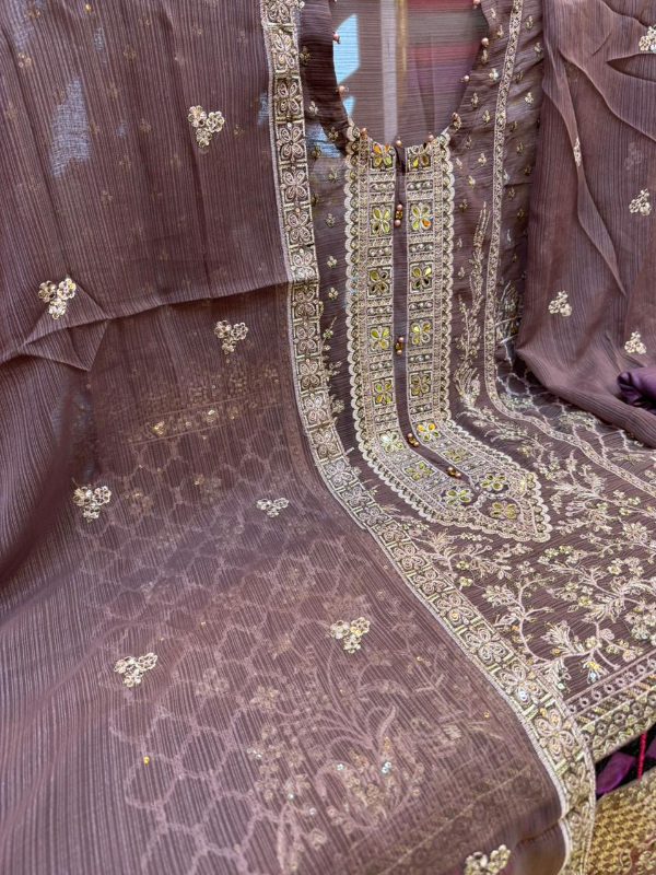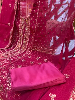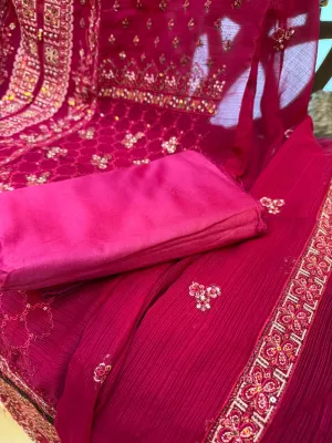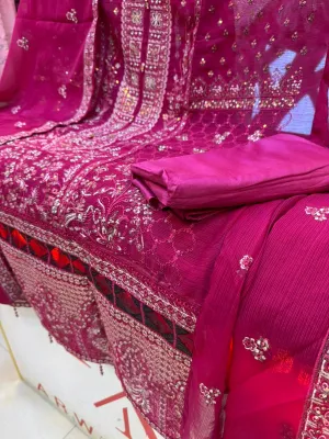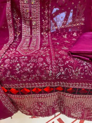Luxury Unstitched Party Dress in Premium Chiffon Georgette Fabric