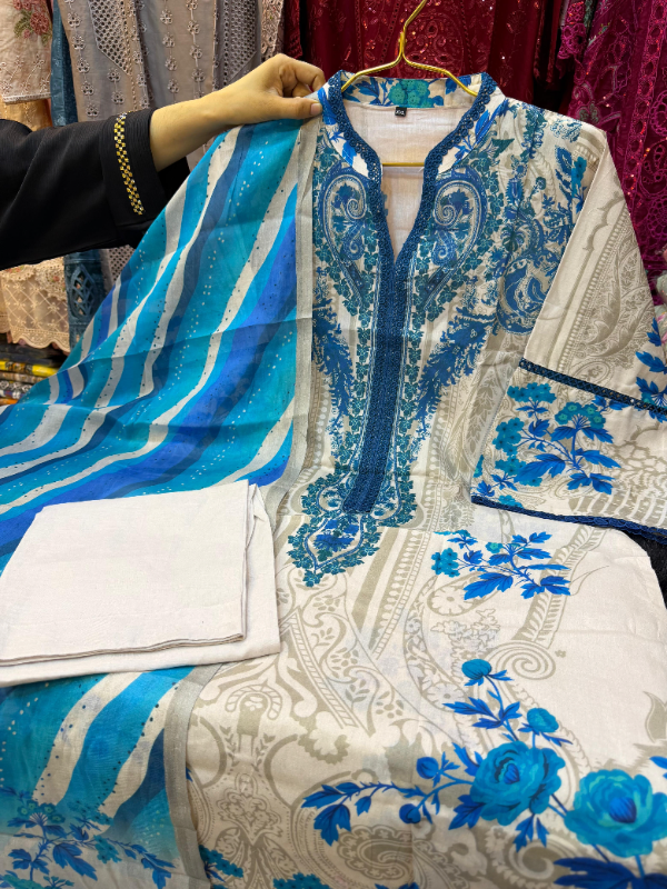 Swizz Lawn Digital Print Suit with Cotton Dupatta