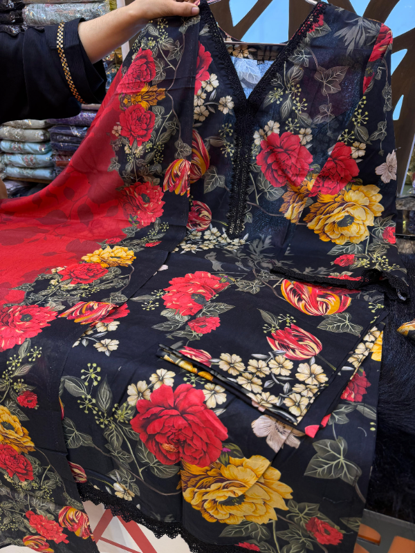 Swizz Lawn Digital Print Suit with Cotton Dupatta